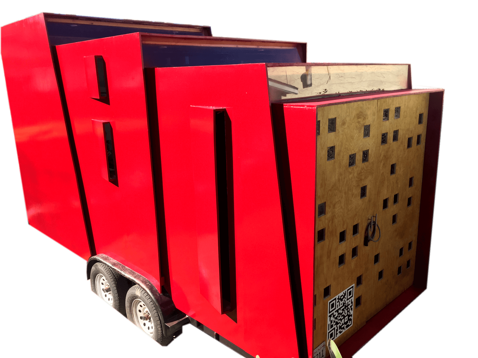 Frame built with metal square bars 2x2 inches and 1⁄2 traded plywood and Exterior house wrap (Tyvek)