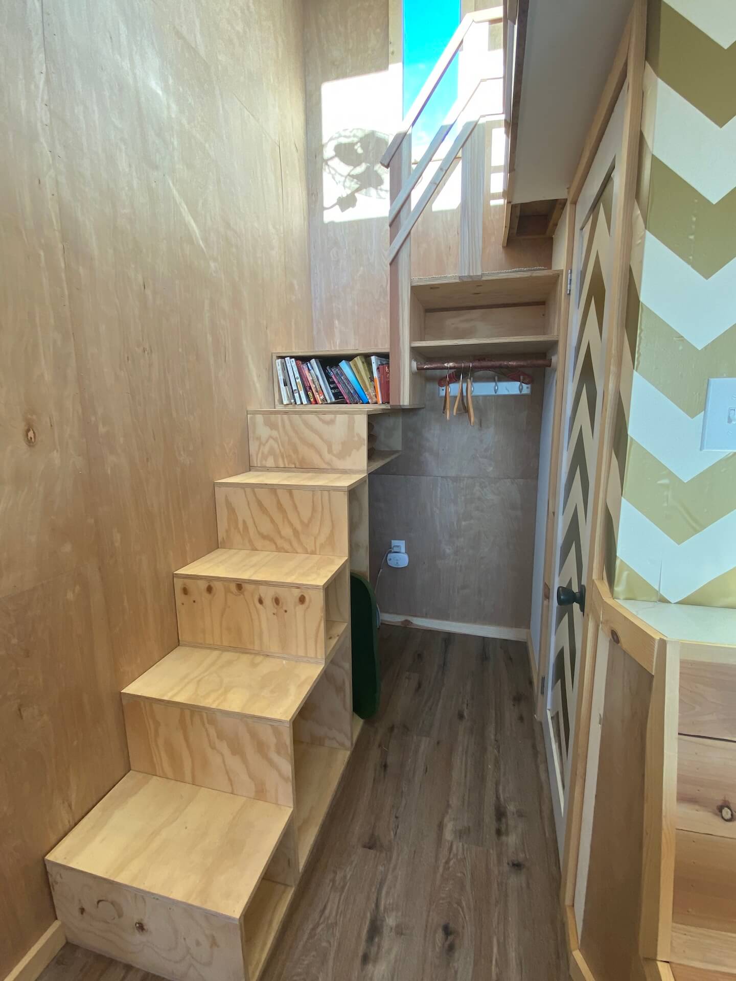is a 20’x10’ tiny home that can be made either on a trailer or as a standalone unit. This model features cathedral ceilings at 12 feet, leaving lots of room for a loft, storage, utility, and most of all, comfort. Within the unit you will find a full-size bathroom, lots of closet space underneath the staircase, and a full kitchen with a mini-fridge, microwave and 12-inch sink. The loft in the unit can hold a queen size bed, and both the loft and the spacious living room are wonderfully lit with plenty of natural lighting. Additionally, the unit includes a mini-split A/C as well as recessed lighting both in and outside. This unit is very customizable